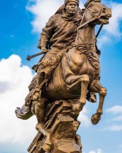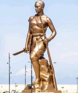 2️⃣- Monument de l’Amazone : La statue est fabriquée en structure métallique, avec une enveloppe en bronze, d’une hauteur de 30m et pesant 150 tonnes pied posé sur un tertre. Le monument est érigé sur l’esplanade de l’Amazone pour son intérêt touristique avec beaucoup d’aménagements. La zone offre des possibilités de détente, d’activité de plein air pour les résidents et visiteurs. Ce monument est construit pour représenter une force féminine historique qui doit servir de repère aux générations actuelles et futures du Bénin, un symbole de l’histoire du Bénin et de l’épopée des illustres personnages.
