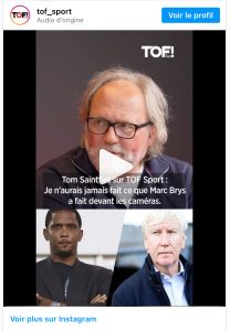InvitĂ© sur le plateau de Tof Sport, en compagne des journalistes de Walfoot Florent Malice et LoĂŻc Woos, et Bruno Govers, qui a connu une longue carrière chez Sport/Foot Magazine et qui officie dĂ©sormais comme vice-prĂ©sident de Sportpress, Saintfiet s’est exprimĂ© sur l’Ă©pisode entre Brys et Eto’o. Le moins que l’on puisse dire, c’est qu’il ne donne pas entière raison Ă l’entraĂ®neur belge.