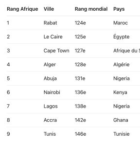 Sur les 148 villes analysées, seules neuf villes africaines figurent dans le classement. Une représentation limitée qui illustre le retard structurel du continent en matière de transformation urbaine intelligente, malgré des dynamiques d’innovation croissantes.