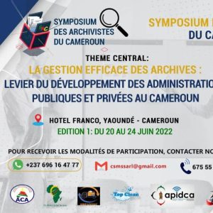Du 20 au 24 juin, les acteurs, les experts, les représentants des institutions, entre autres vont se réunir pour le bien du corps de profession d’archiviste ainsi que des métiers connexes. Le thème de cet 1ere édition est : « la gestion efficace des archives : leviers du développement des administrations publiques et privées au Cameroun ». De manière concrète, il est question pour les organisateurs de ces assises, d’encourager la communauté archivistique à porter un regard vers l’extérieur en questionnant les diverses exploitations contemporaines et innovantes des documents afin d’en mesurer l’impact sur la discipline archivistique. En d’autres termes, le symposium se propose de rassembler tous les professionnels archivistes autour d’une réflexion scientifique en soulevant les problèmes rencontrés aux fins d’apporter une contribution efficace à la construction efficace de ce vaste édifice qu’est la fonction archivistique. Cela, passe inéluctablement par la présentation de la situation réelle et la problématique de la gestion des archives dans les organisations de chacun des participants ; la contribution à la formation du personnel des archives pour recourir à leur bon sens ; attirer l’attention des décideurs et services producteurs que les archives sont un outil efficace de développement et la bonne gouvernance d’une institution ; donner la place aux archives audiovisuelles dans la conservation du patrimoine public ; etc.