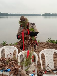 Les rites et rituels ont été encensé pour l’appel aux ancêtres, les Belimbi(tambours de message) et la descente dans les abysses marins par l’envoyer,les Psalmodies ont accompagné et rythmé la descente des eaux et la remontée, jusqu’à la remise du panier sacré contenant le message aux ancêtres animé par un Groupe d’Essewe n’executant que des airs et pas de circonstances…La fête de l’eau aura été cosmogonico-Mystique, dans une transmutation participative avec l’ensemble du Peuple Sawa dans les chaumières et sur les réseaux sociaux…et aura su dompter la Covid-19 peut permettre au Ngondo d’Etre cette année et se fut…
