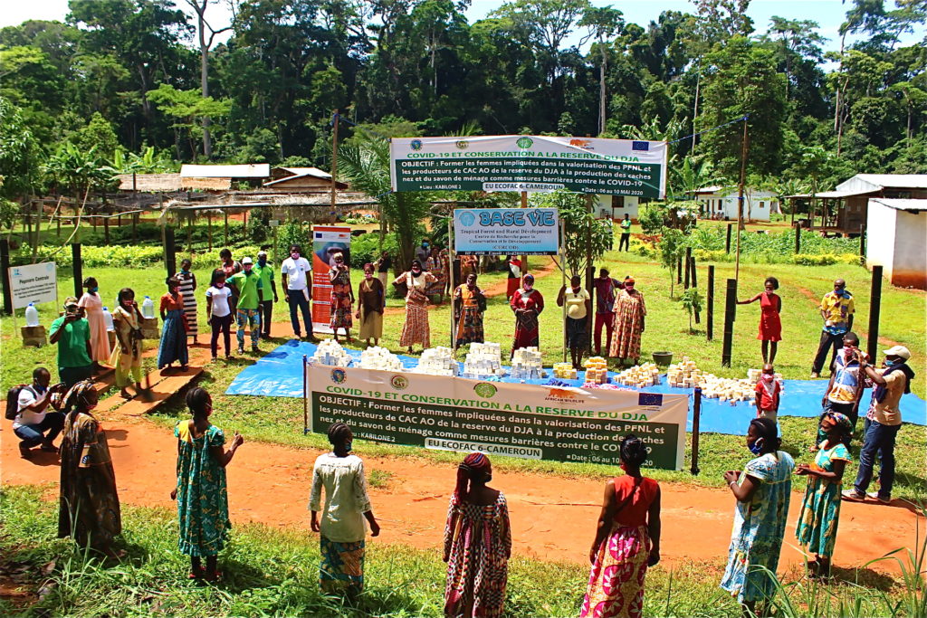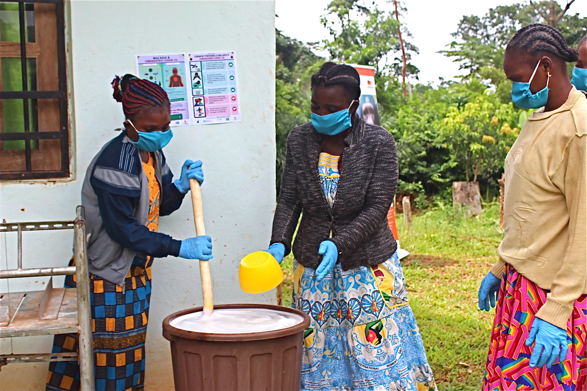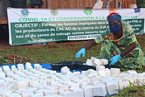 COVID-19:ECOFAC 6 aide les communautés locales à prévenir le coronavirus, les femmes de la Boucle du Dja en action.