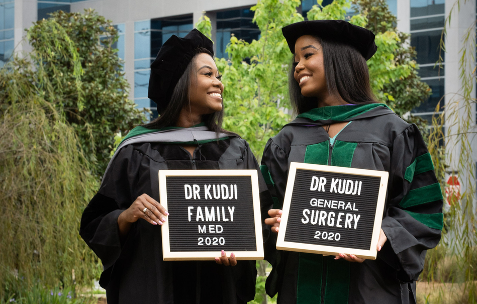 Le 20 mars, Cynthia et Jasmine Kudji ont été ravies d’apprendre qu’elles s’étaient toutes les deux admises comme résidentes au LSU à seulement deux heures l’une de l’autre, dans la région de la Nouvelle-Orléans, qualifiée de «point chaud» pour le COVID-19 par les responsables de la santé publique. «Malgré l’augmentation alarmante des cas de COVID-19 à la Nouvelle-Orléans, je suis toujours très heureuse de commencer ma résidence. C’est une période extraordinaire dans l’histoire de la médecine, et je suis fière de pouvoir bientôt aider et apprendre de toutes les manières possibles », a déclaré Jasmine Kudji.