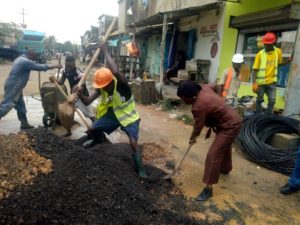 Bonabéri-Douala, Samedi 27 Juillet- L’élue sénatrice dans la circonscription électorale de la région du Littoral(Cameroun),  Mme Minyem epse Eboumbou, a organisé une séance d’investissement humain sur les routes du Quartier Sodiko.