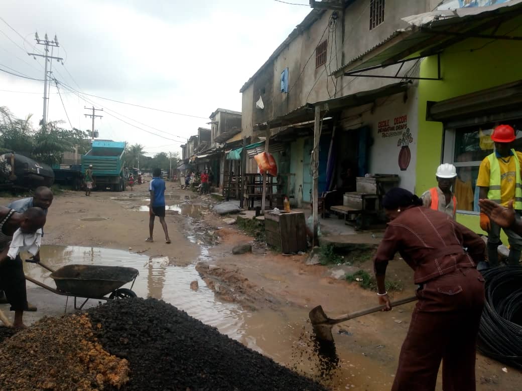 Bonabéri-Douala, Samedi 27 Juillet- L’élue sénatrice dans la circonscription électorale de la région du Littoral(Cameroun),  Mme Minyem epse Eboumbou, a organisé une séance d’investissement humain sur les routes du Quartier Sodiko.