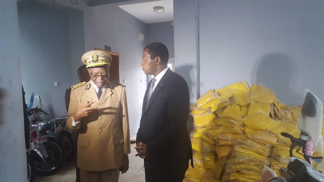 Répondant à l’appel de certains jeunes de certains villages de la région, qui avaient solliciter de l’État une aide et un accompagnement pour sécuriser leurs villages et habitations faces aux attaques de certains groupes armés, le Minat a rappelé le droit à se défendre du citoyen(légitime défense) et le droit de secourir une personne en danger(Femmes et enfants violés et abusés),<<Vous devez veillez et alerter les autorités en cas de repérages d’actions suspectes, c’est donc un travail de collaboration et non de substitution que vous devez exercer>>. Joignant la parole à l’acte, il a remis des motos, téléphones et d’autres outils de sécurité.