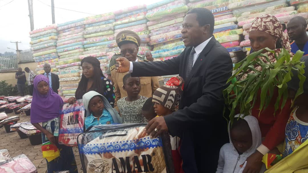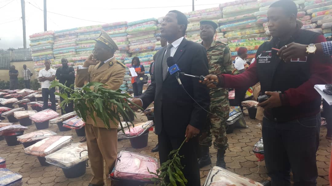 C’est plus de 2000 personnes constituant les 600 Familles recensés dans la ville de Bamenda en situation de besoins urgent, qui sont venus à la rencontre de Leur Fils, Le Minat et ont ainsi reçu l’aide de l’état du Cameroun, qui vient des efforts de tout les Camerounais et de son Chef le Président Paul Biya dira-t-il.Tenant l’arbre de la paix en main, Paul Atanga Nji dira aux populations venus très nombreuses, <<que la paix n’a pas de prix, Les gens ont des ambitions et des envies, mais doivent apprendre à respecter celles des autres et la vie des autres, le Chaos n’est pas un projet de vie>>. Il a rassuré les populations sur la volonté du Chef de l’État de ramener la situation à la normale, pour qu’il retrouve leurs vies d’antan.Il a appelé les jeunes, qui s’adonnent aux pratiques de déstabilisations à prendre la main tendue du Chef de l’État et d’intégrer le centre de désarmement, de mobilisation et de réinsertion sans le risque d’être poursuivi et avec l’avantage d’être inséré dans la société.