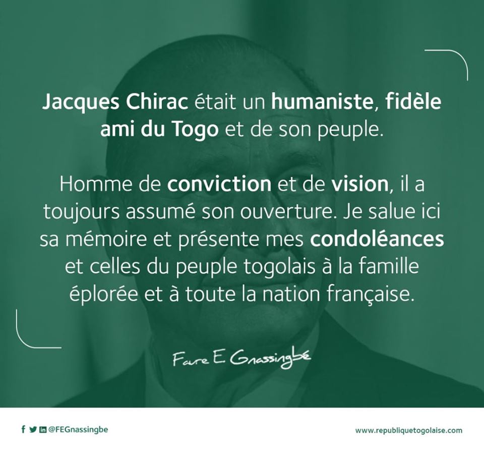 « Jacques Chirac était un humaniste, fidèle ami du Togo et de son peuple », a écrit Faure Gnassingbé sur sa page Facebook.