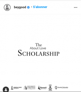 La bourse baptisée « About Love » est une collaboration entre la fondation Shawn de Jay-Z, le programme caritatif BeyGOOD de Beyoncé et la marque de bijoux de luxe Tifany& Co, lit-on sur Hip-Hop DX.