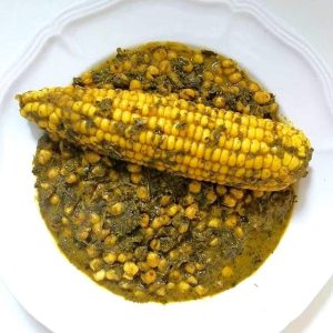 – Corn Chaff is a hearty Cameroonian stew utilizing corn and beans as the key ingredients. Corn and beans are slowly simmered with ingredients such as onions, palm oil, tomatoes, various spices, and meat or smoked fish, depending on personal preference, although meat and fish can be omitted from the dish.