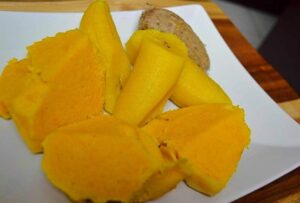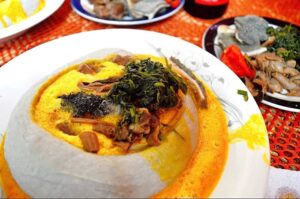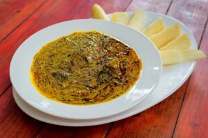 One of the major attractions of Cameroon is in its local meals. This country has over 250 ethnic groups, each having its local delicacy. Whichever meal you enjoy eating from any part of Africa is found in Cameroon, no doubt the country has been labelled “Africa in miniature”. The coastal part of the country, that is Douala, Kribi, Limbe is known for its fish abundance. Ndole with an accompaniment like “miondo’’, fried plantain, white yam is an amazing delicacy from the littoral region. Khati khati, fufu with huckle berry, Achu are delicacies from the north west region of the country. Eru and waterfufu is typical of the South west region. The abundance in food crops like maize, cocoyam, vegetables, cassava are the main sources of variety in the Cameroon cuisine.