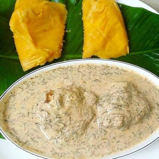 – Le Mbole des Nanga Eboko mixé à la viande de bouef, crevettes, écrevisses fumées bien pimenté et sa boule de couscous.
