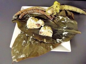 – Le Koki, (met commun avec la région du littoral) gâteau à base de cornille, d’huile de palme et de piment emballé dans des feuilles de banane plantain. Le Koki est une sorte de gâteau traditionnel fait à base de graines de cornille et d’huile de palme (rouge).