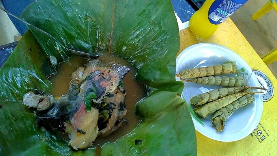 – Le Touop-Touop Kelong, ragoût de plantain découpé en dé, mélangé à l’huile rouge et au poisson fumé.