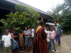 Elle a fait le tour d’une trentaine de maisons qui héberge des familles déplacés de la crise dite Anglophone des régions du Nord-ouest et Sud-ouest du Cameroun.