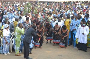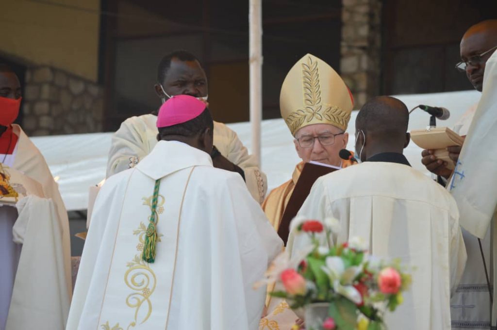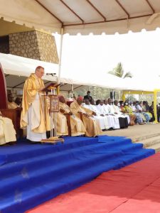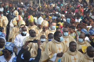 Avec vous, je remercie le Seigneur qui nous a donné la joie de nous rencontrer ici, aujourd’hui, à l’occasion de l’imposition du pallium à Mgr Andrew Nkea, Pasteur de cette Église particulière dans laquelle l’unique Église sainte, catholique et apostolique, Église du christ, est réellement présente et active. Votre présence massive à cette célébration atteste de l’amour pour votre archevêque et de votre désir de célébrer avec lui.